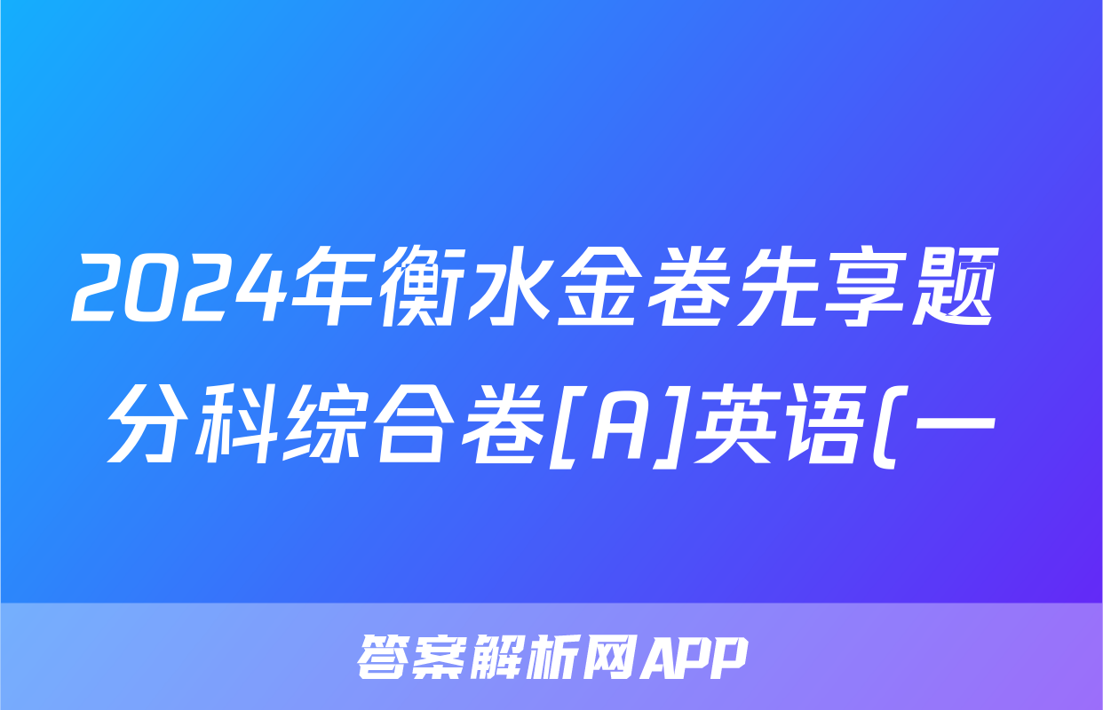 2024年衡水金卷先享题 分科综合卷[A]英语(一)1试题正在持续更新,目前2024届最新高考模拟示范卷答案网为大家整理了相关试题及答案,供大家查缺补漏,高效提升成绩。