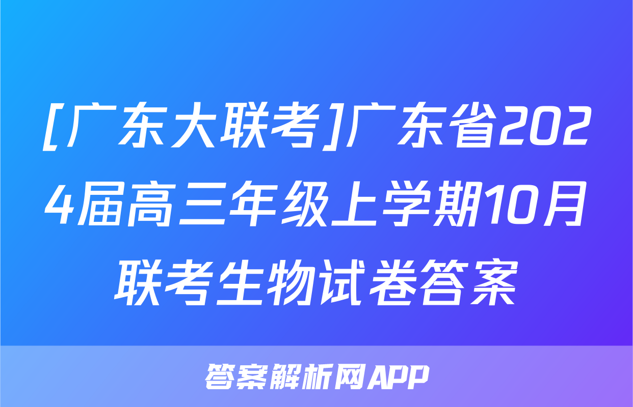 [广东大联考]广东省2024届高三年级上学期10月联考生物试卷答案正在持续更新,目前2024届最新高考模拟示范卷答案网为大家整理了相关试题及答案,供大家查缺补漏,高效提升成绩。