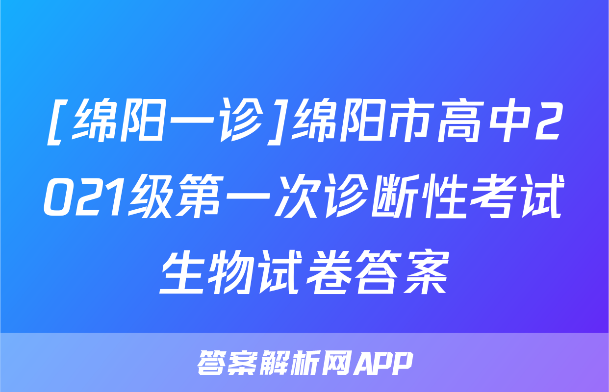 [绵阳一诊]绵阳市高中2021级第一次诊断性考试生物试卷答案正在持续更新,目前2024届最新高考模拟示范卷答案网为大家整理了相关试题及答案,供大家查缺补漏,高效提升成绩。