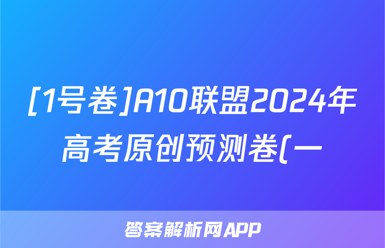 [1号卷]A10联盟2024年高考原创预测卷(一)1化学答案正在持续更新,目前2024届最新高考模拟示范卷答案网为大家整理了相关试题及答案,供大家查缺补漏,高效提升成绩。