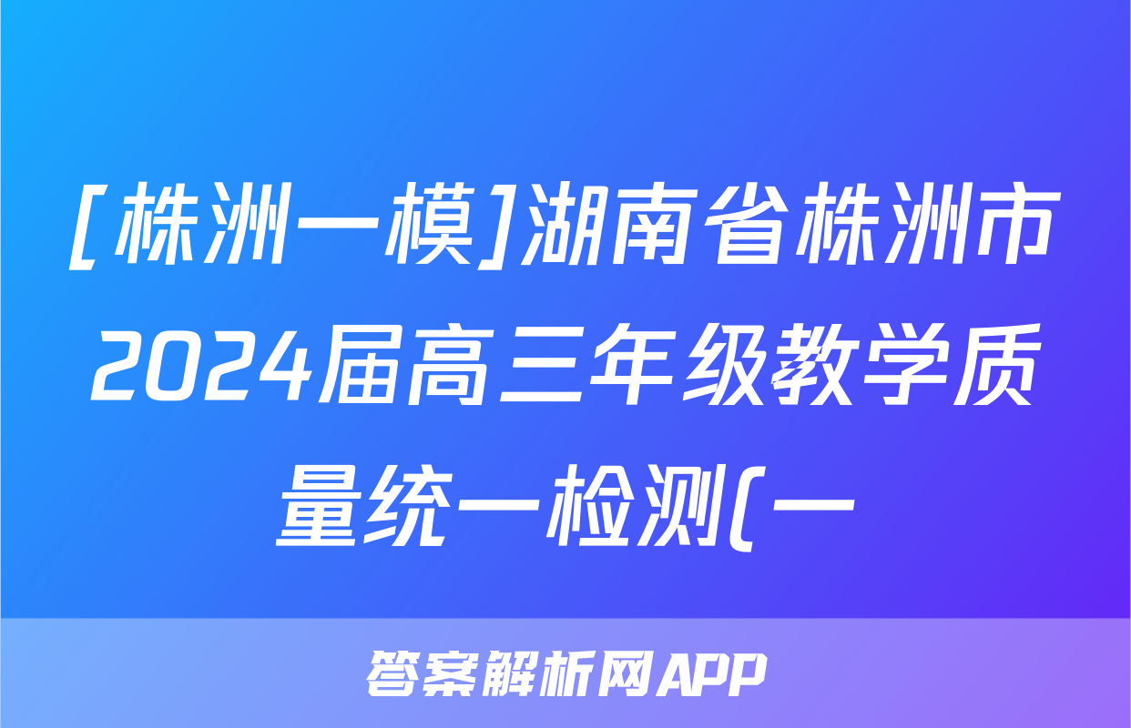 [株洲一模]湖南省株洲市2024届高三年级教学质量统一检测(一)英语答案正在持续更新,目前2024届最新高考模拟示范卷答案网为大家整理了相关试题及答案,供大家查缺补漏,高效提升成绩。