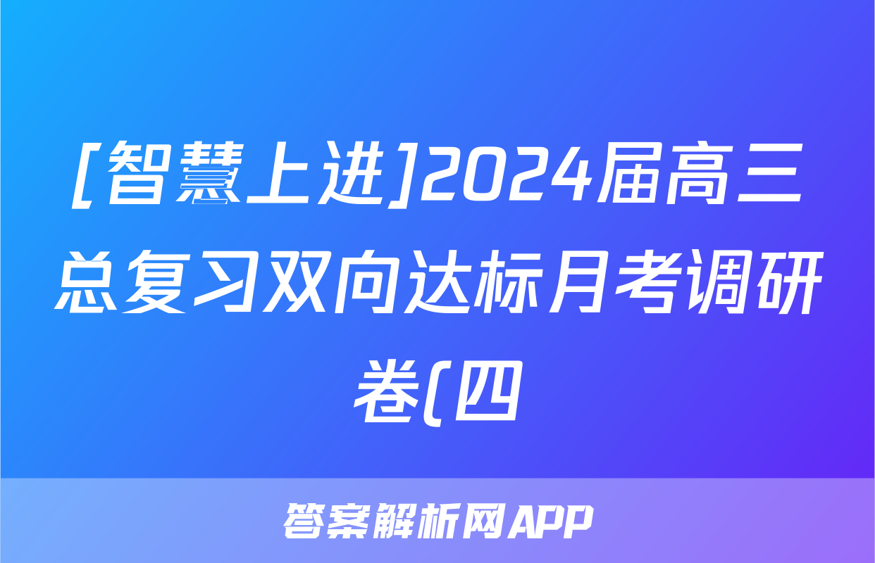 [智慧上进]2024届高三总复习双向达标月考调研卷(四)4英语·ⅠA试题正在持续更新,目前2024届最新高考模拟示范卷答案网为大家整理了相关试题及答案,供大家查缺补漏,高效提升成绩。