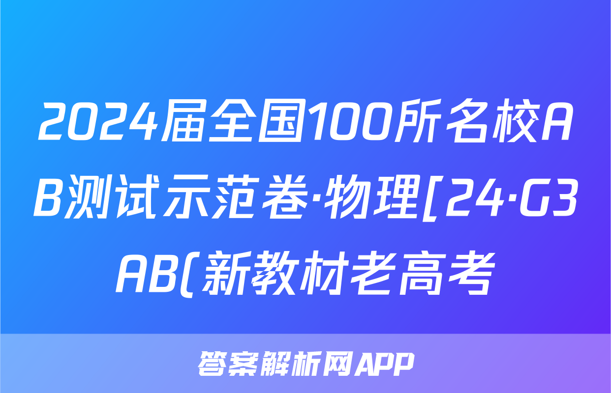 2024届全国100所名校AB测试示范卷·物理[24·G3AB(新教材老高考)·物理-LKB-必考-QG]二试题正在持续更新,目前2024届最新高考模拟示范卷答案网为大家整理了相关试题及答案,供大家查缺补漏,高效提升成绩。