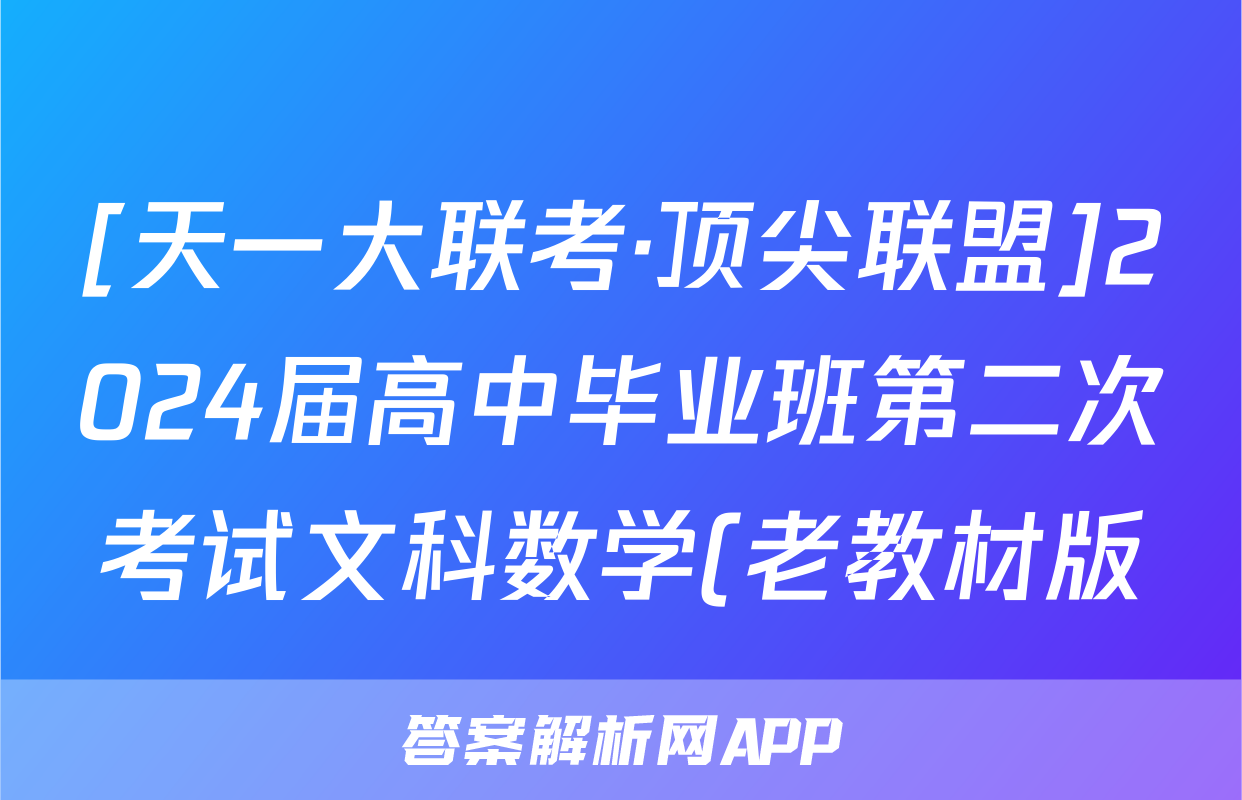 [天一大联考·顶尖联盟]2024届高中毕业班第二次考试文科数学(老教材版)试题正在持续更新,目前2024届最新高考模拟示范卷答案网为大家整理了相关试题及答案,供大家查缺补漏,高效提升成绩。