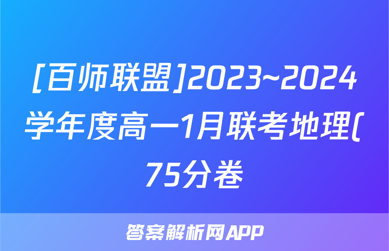 [百师联盟]2023~2024学年度高一1月联考地理(75分卷)答案