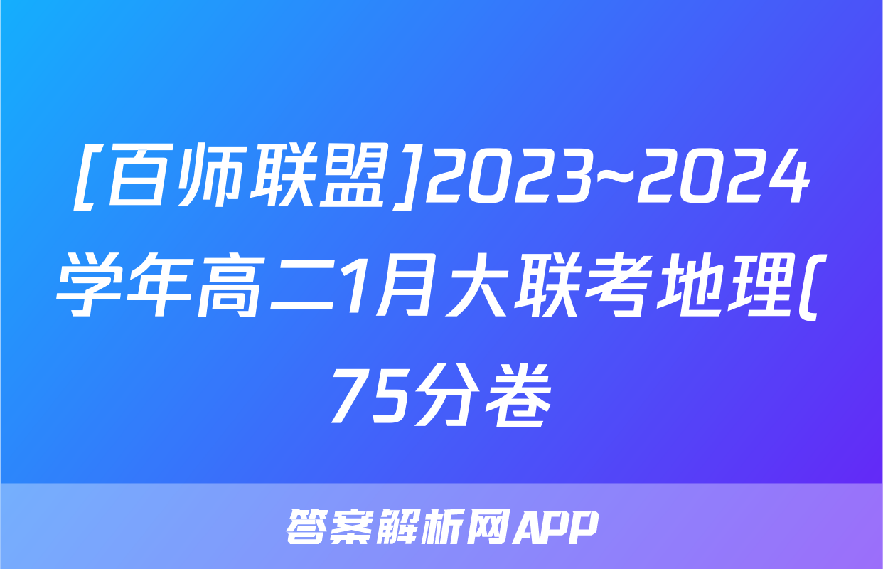[百师联盟]2023~2024学年高二1月大联考地理(75分卷)答案正在持续更新,目前2024届最新高考模拟示范卷答案网为大家整理了相关试题及答案,供大家查缺补漏,高效提升成绩。