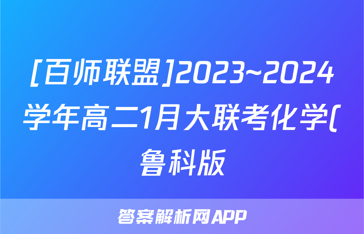 [百师联盟]2023~2024学年高二1月大联考化学(鲁科版)试题正在持续更新,目前2024届最新高考模拟示范卷答案网为大家整理了相关试题及答案,供大家查缺补漏,高效提升成绩。
