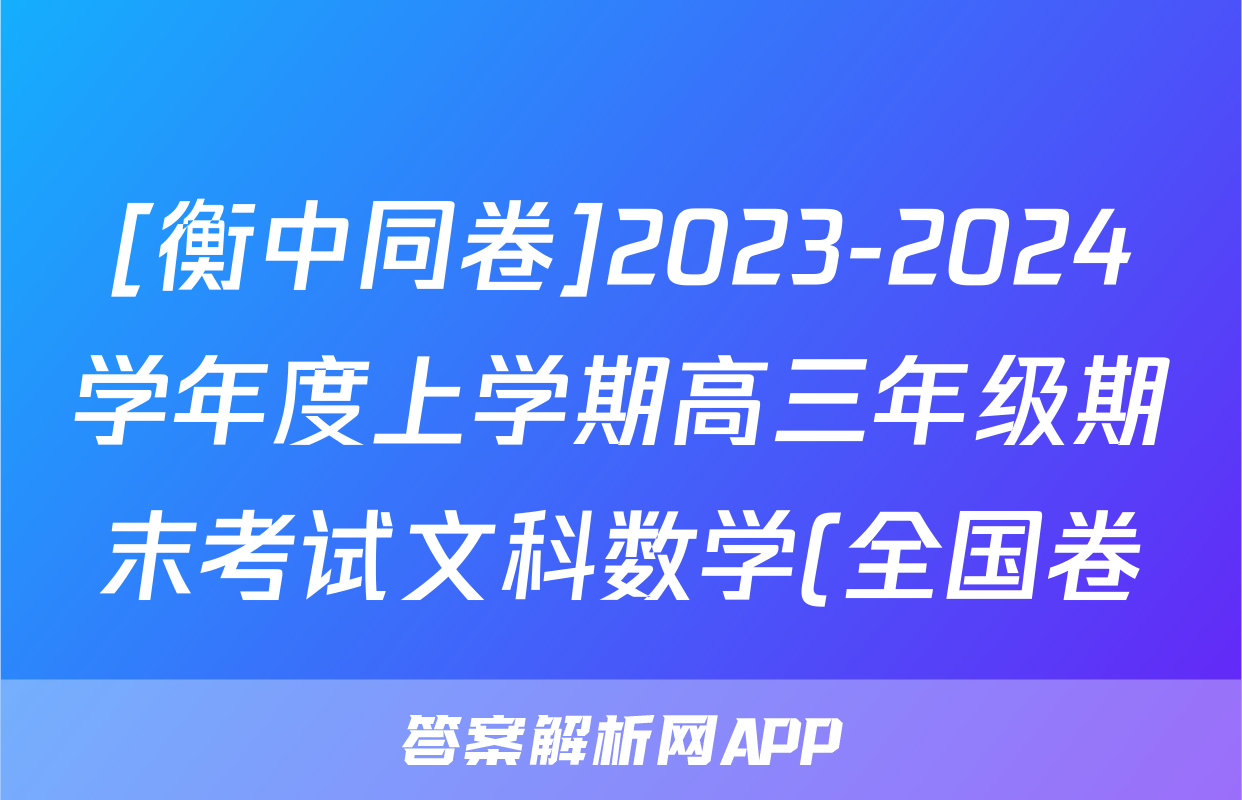 [衡中同卷]2023-2024学年度上学期高三年级期末考试文科数学(全国卷)答案正在持续更新,目前2024届最新高考模拟示范卷答案网为大家整理了相关试题及答案,供大家查缺补漏,高效提升成绩。