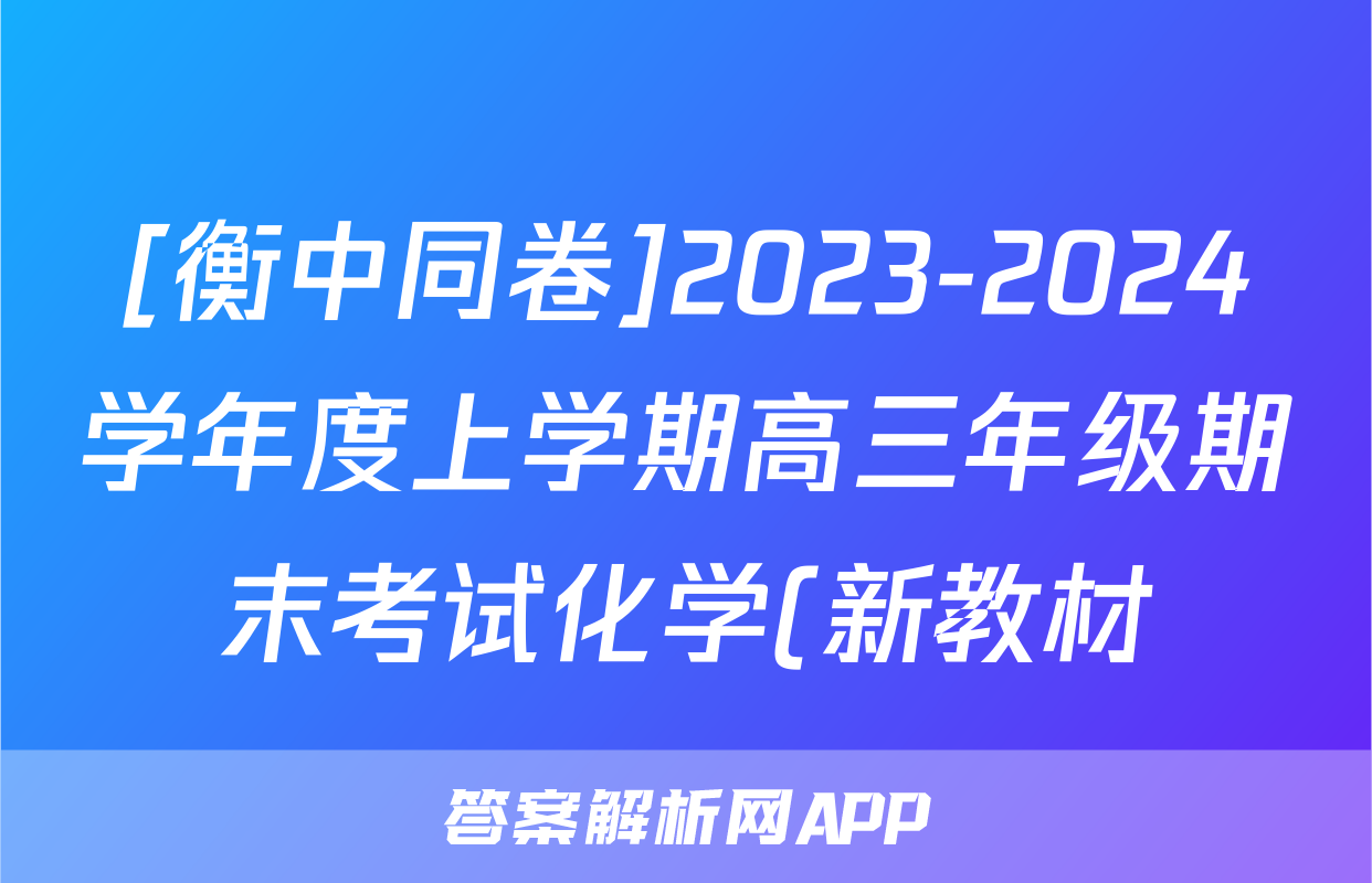 [衡中同卷]2023-2024学年度上学期高三年级期末考试化学(新教材)答案正在持续更新,目前2024届最新高考模拟示范卷答案网为大家整理了相关试题及答案,供大家查缺补漏,高效提升成绩。
