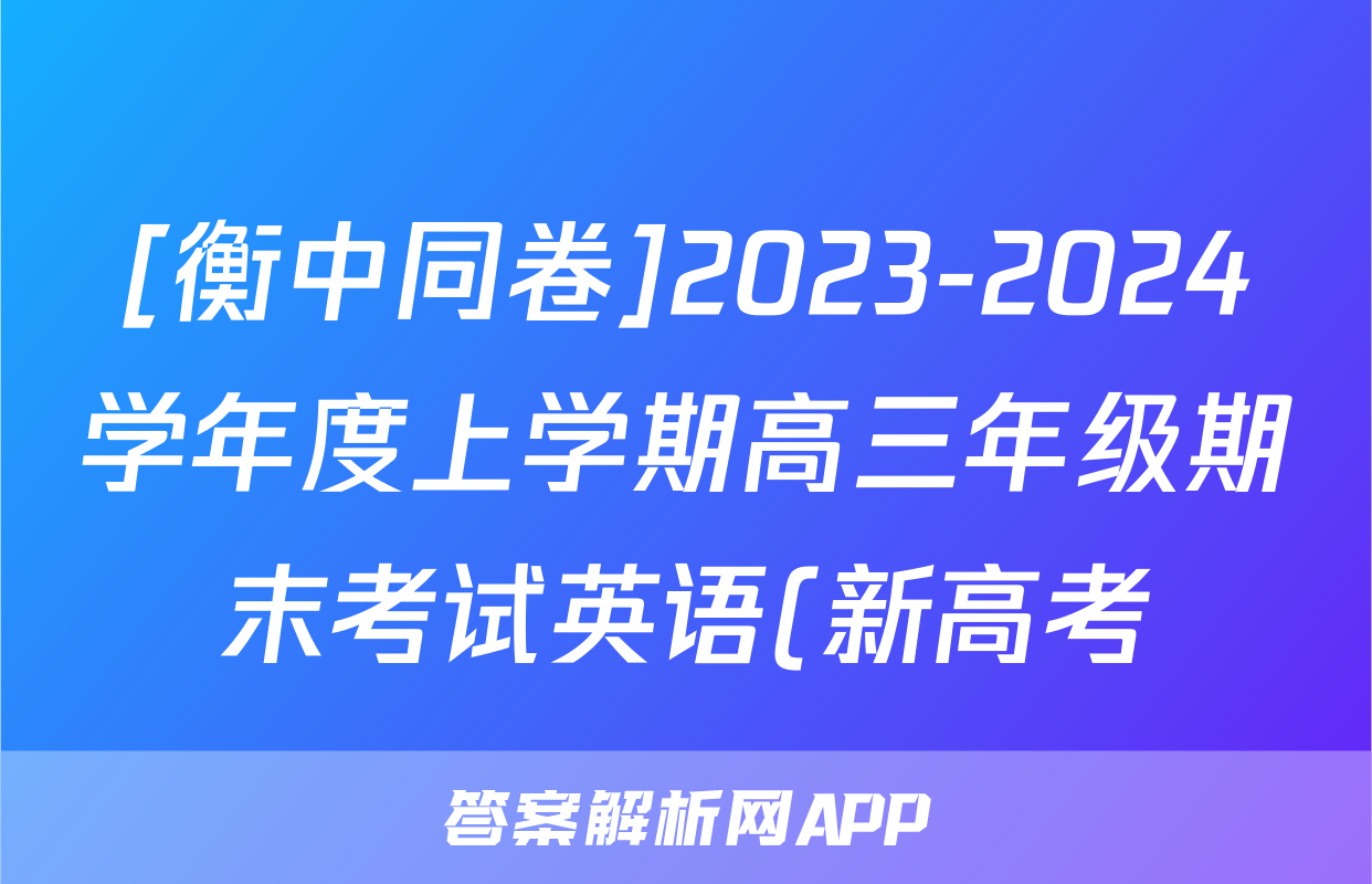 [衡中同卷]2023-2024学年度上学期高三年级期末考试英语(新高考)试题