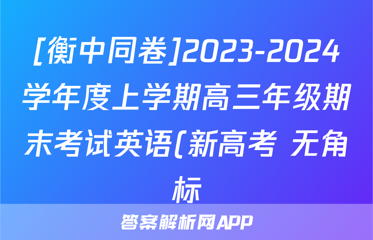 [衡中同卷]2023-2024学年度上学期高三年级期末考试英语(新高考 无角标)答案正在持续更新,目前2024届最新高考模拟示范卷答案网为大家整理了相关试题及答案,供大家查缺补漏,高效提升成绩。