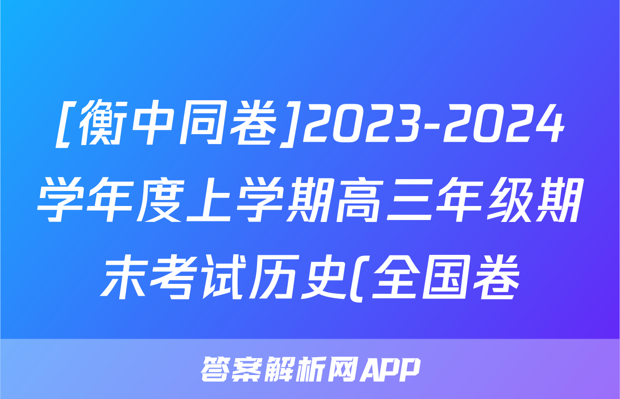 [衡中同卷]2023-2024学年度上学期高三年级期末考试历史(全国卷)答案正在持续更新,目前2024届最新高考模拟示范卷答案网为大家整理了相关试题及答案,供大家查缺补漏,高效提升成绩。
