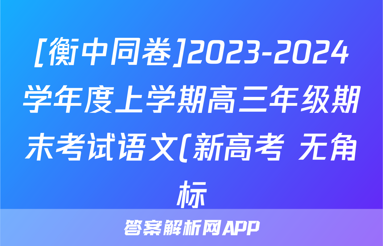 [衡中同卷]2023-2024学年度上学期高三年级期末考试语文(新高考 无角标)答案正在持续更新,目前2024届最新高考模拟示范卷答案网为大家整理了相关试题及答案,供大家查缺补漏,高效提升成绩。