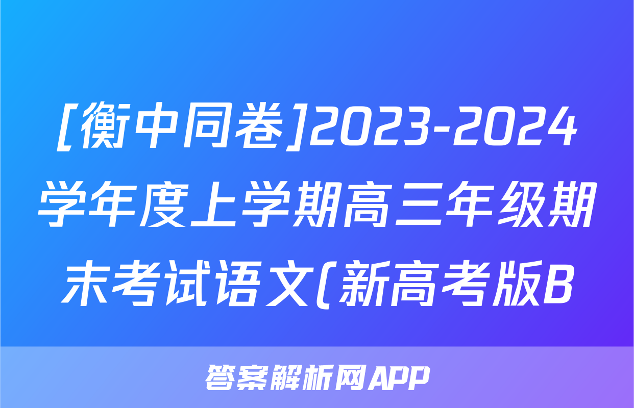 [衡中同卷]2023-2024学年度上学期高三年级期末考试语文(新高考版B)(新高考版B)试题正在持续更新,目前2024届最新高考模拟示范卷答案网为大家整理了相关试题及答案,供大家查缺补漏,高效提升成绩。