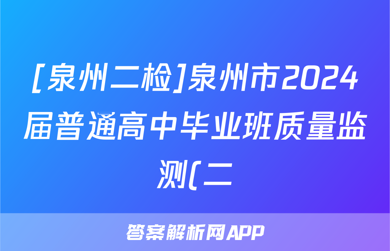 [泉州二检]泉州市2024届普通高中毕业班质量监测(二)2生物答案正在持续更新,目前2024届最新高考模拟示范卷答案网为大家整理了相关试题及答案,供大家查缺补漏,高效提升成绩。