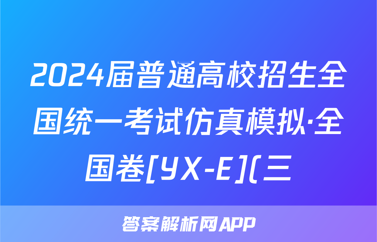 2024届普通高校招生全国统一考试仿真模拟·全国卷[YX-E](三)3文科综合答案正在持续更新,目前2024届最新高考模拟示范卷答案网为大家整理了相关试题及答案,供大家查缺补漏,高效提升成绩。