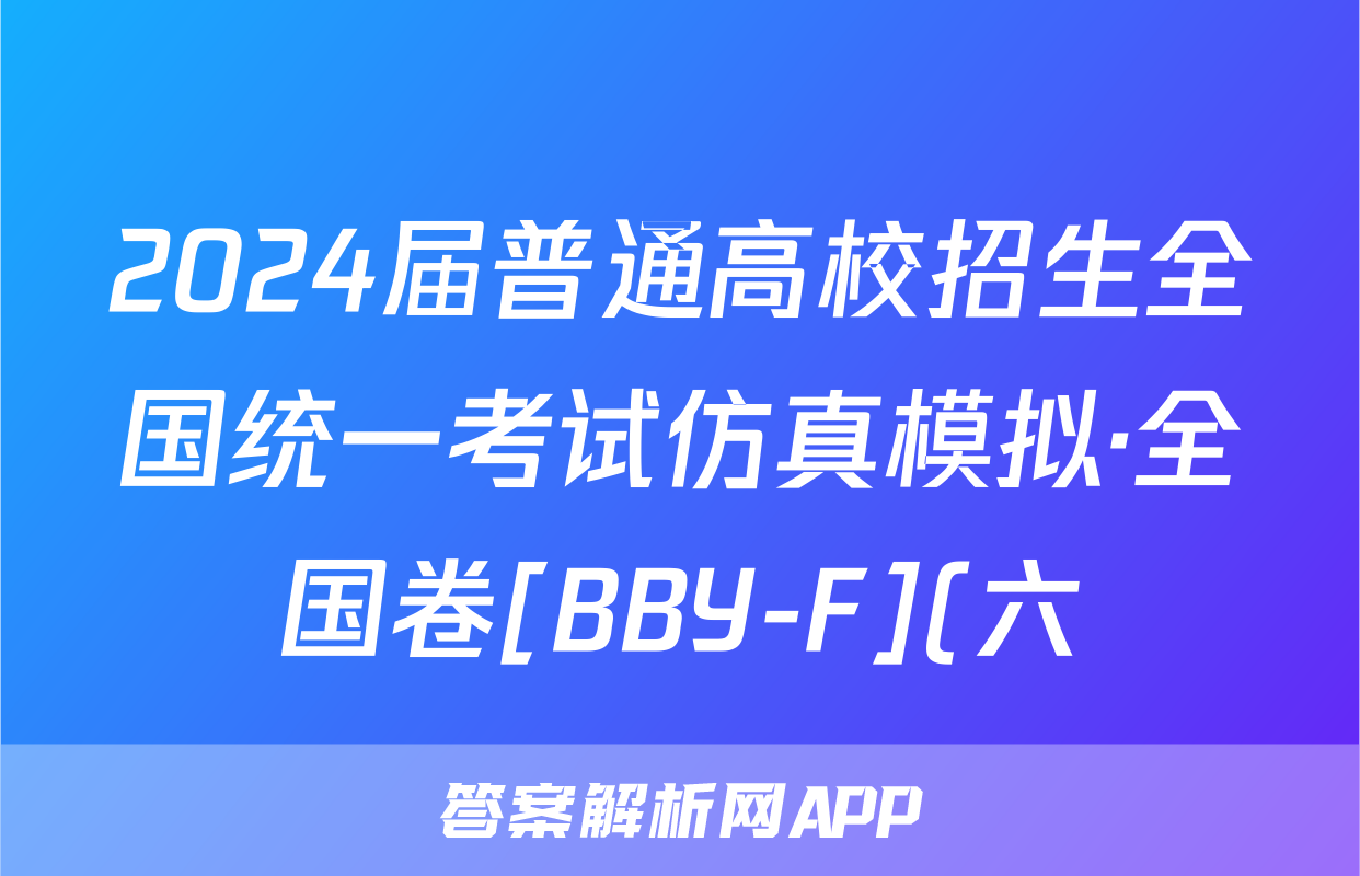 2024届普通高校招生全国统一考试仿真模拟·全国卷[BBY-F](六)6语文答案正在持续更新,目前2024届最新高考模拟示范卷答案网为大家整理了相关试题及答案,供大家查缺补漏,高效提升成绩。