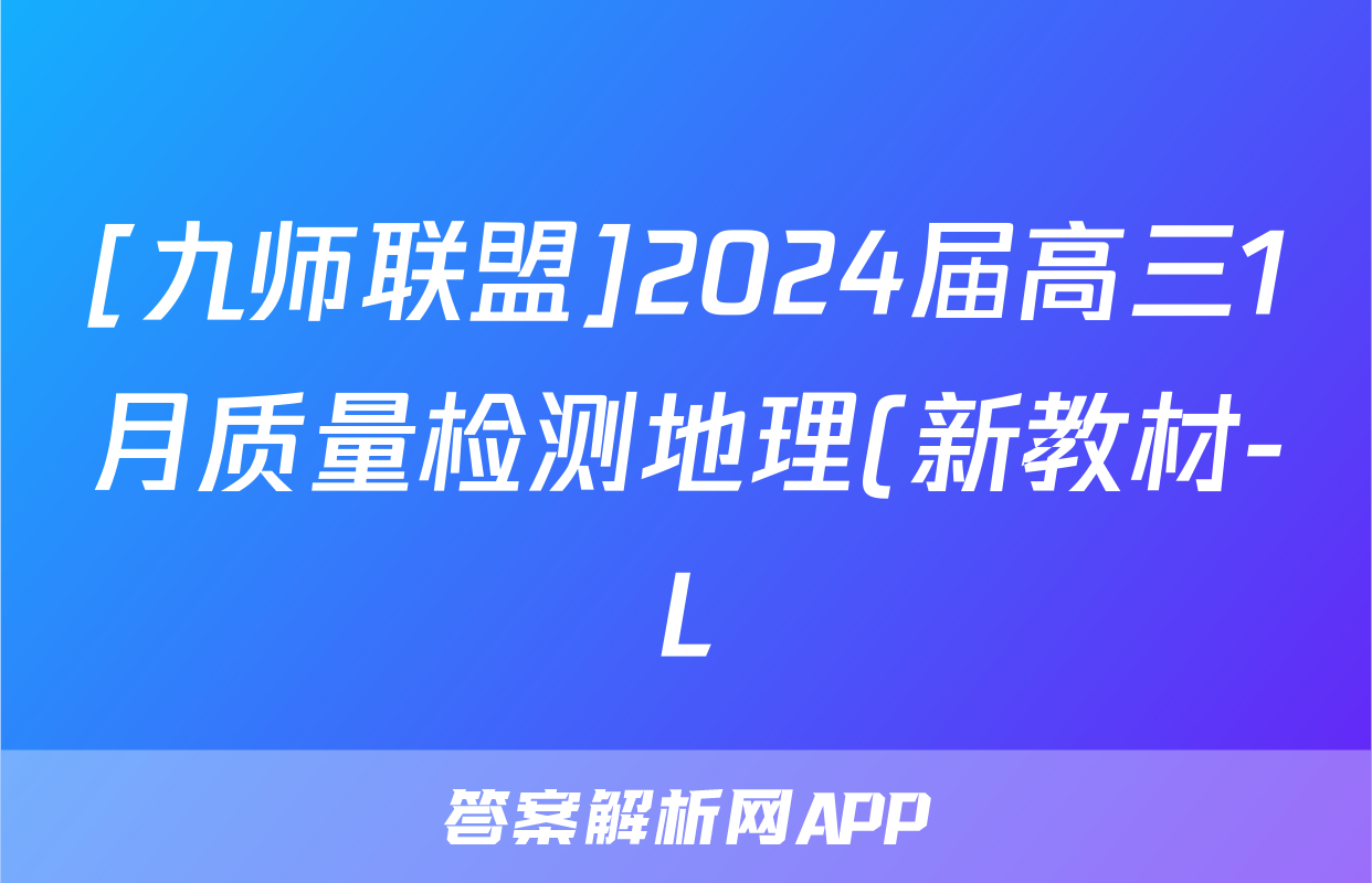 [九师联盟]2024届高三1月质量检测地理(新教材-L)答案