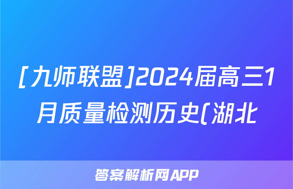 [九师联盟]2024届高三1月质量检测历史(湖北)答案