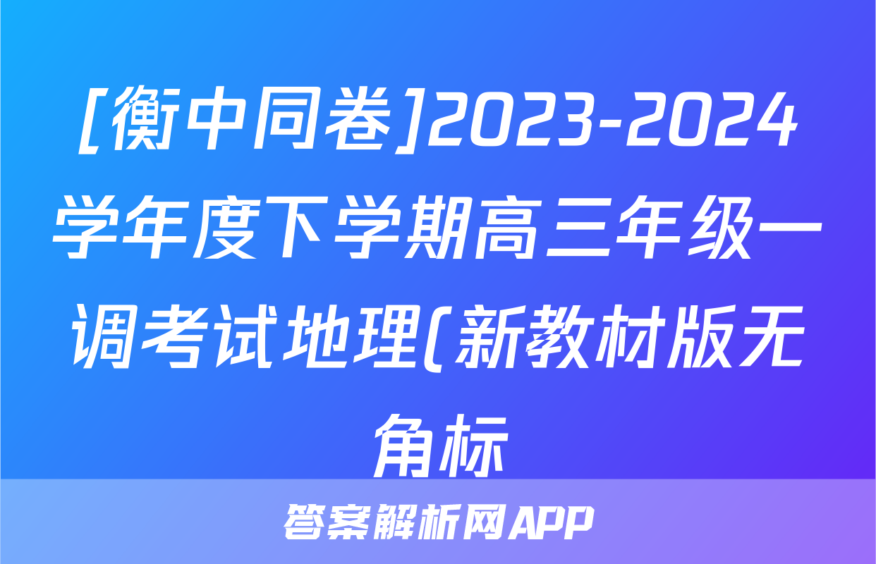 [衡中同卷]2023-2024学年度下学期高三年级一调考试地理(新教材版无角标)答案正在持续更新,目前2024届最新高考模拟示范卷答案网为大家整理了相关试题及答案,供大家查缺补漏,高效提升成绩。