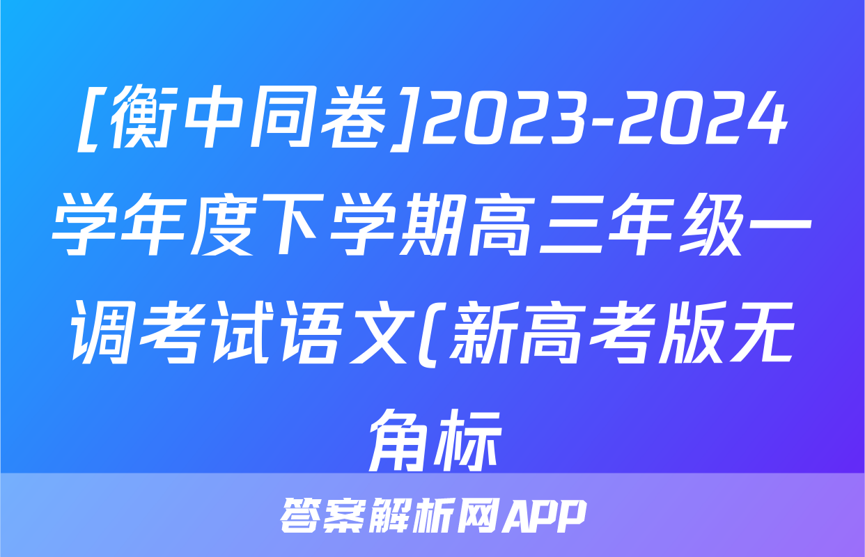[衡中同卷]2023-2024学年度下学期高三年级一调考试语文(新高考版无角标)答案正在持续更新,目前2024届最新高考模拟示范卷答案网为大家整理了相关试题及答案,供大家查缺补漏,高效提升成绩。