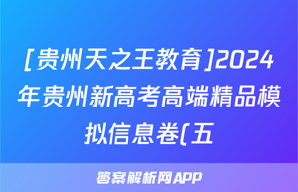 [贵州天之王教育]2024年贵州新高考高端精品模拟信息卷(五)5生物答案正在持续更新,目前2024届最新高考模拟示范卷答案网为大家整理了相关试题及答案,供大家查缺补漏,高效提升成绩。