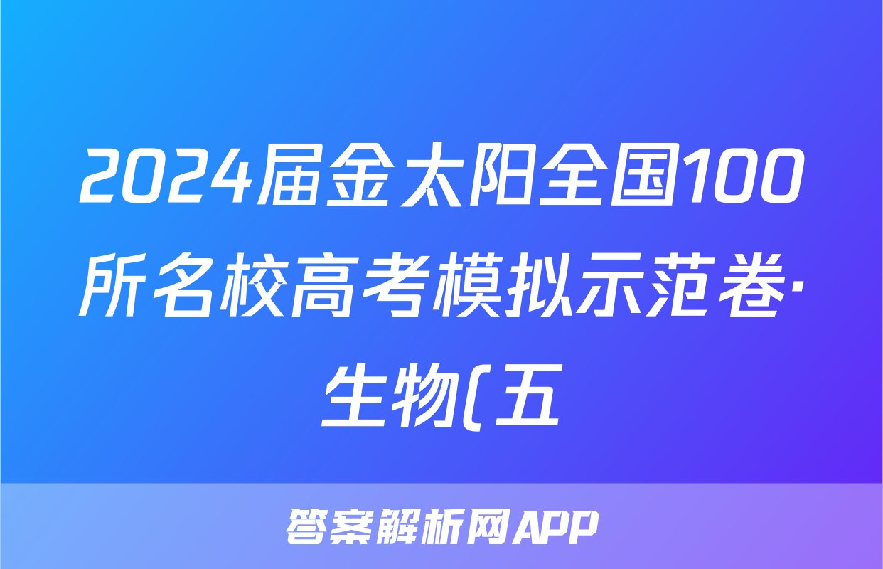 2024届金太阳全国100所名校高考模拟示范卷·生物(五)5[24·ZX·MNJ·生物·Y]试题正在持续更新,目前2024届最新高考模拟示范卷答案网为大家整理了相关试题及答案,供大家查缺补漏,高效提升成绩。