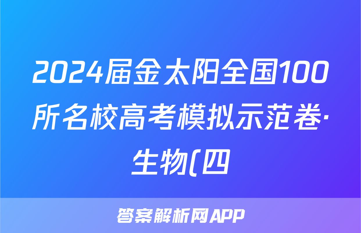 2024届金太阳全国100所名校高考模拟示范卷·生物(四)4[24·ZX·MNJ·生物·Y]试题正在持续更新,目前2024届最新高考模拟示范卷答案网为大家整理了相关试题及答案,供大家查缺补漏,高效提升成绩。