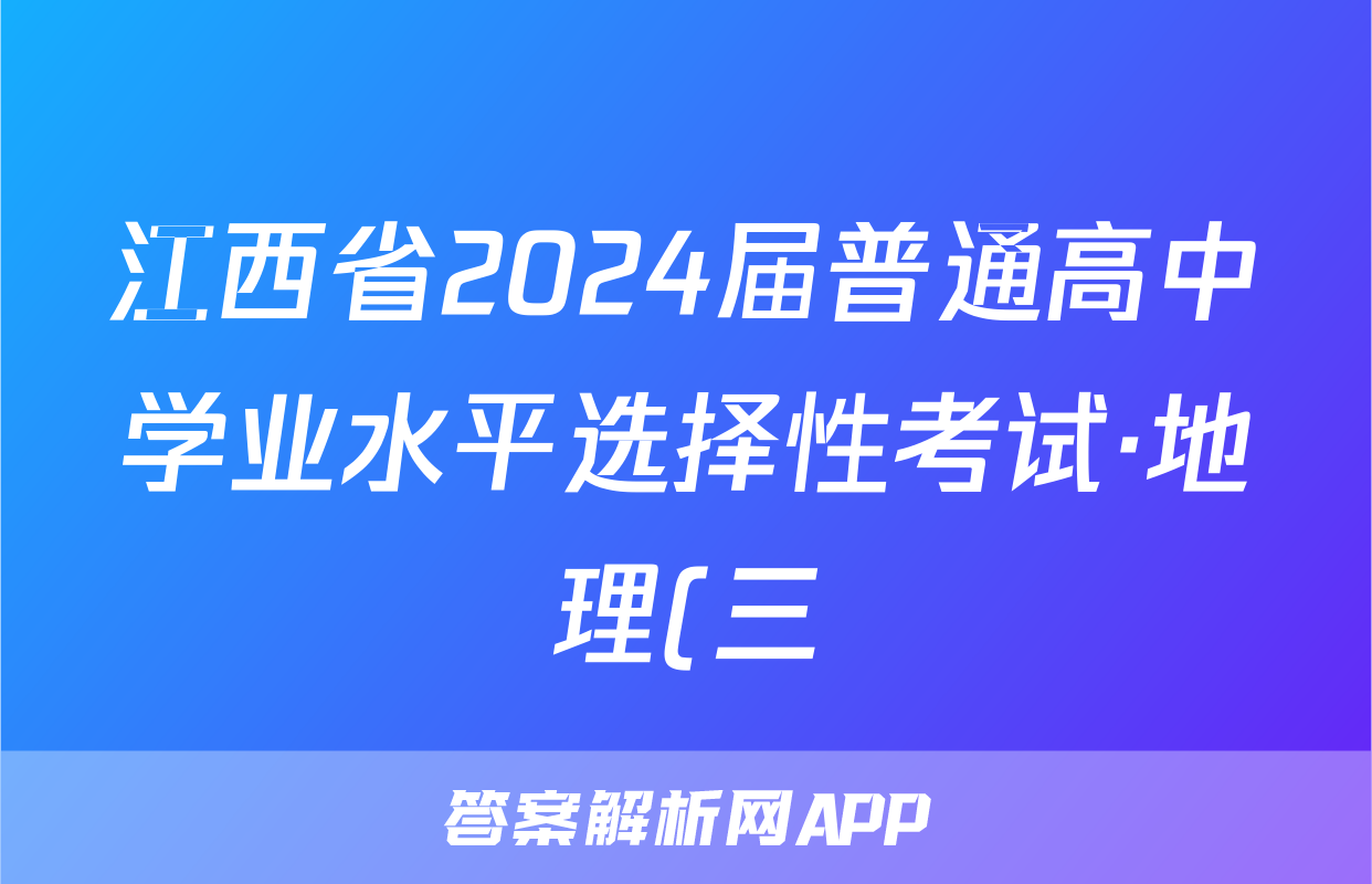 江西省2024届普通高中学业水平选择性考试·地理(三)3[24·(新高考)ZX·MNJ·地理·JX]试题正在持续更新,目前2024届最新高考模拟示范卷答案网为大家整理了相关试题及答案,供大家查缺补漏,高效提升成绩。