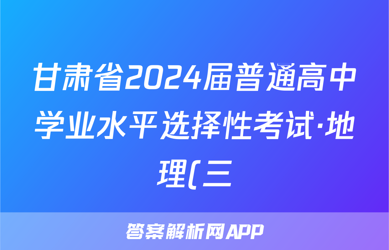 甘肃省2024届普通高中学业水平选择性考试·地理(三)3[24·(新高考)ZX·MNJ·地理·GS]答案正在持续更新,目前2024届最新高考模拟示范卷答案网为大家整理了相关试题及答案,供大家查缺补漏,高效提升成绩。