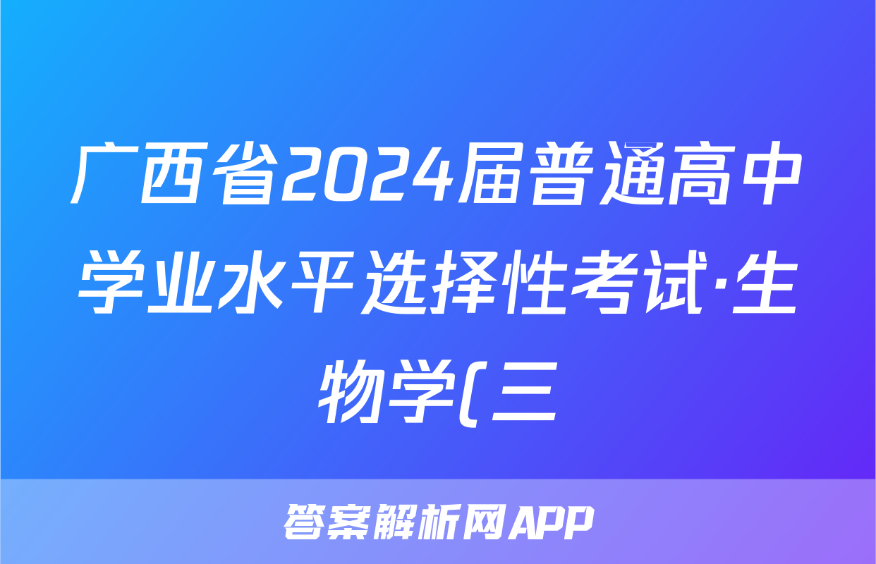 广西省2024届普通高中学业水平选择性考试·生物学(三)3[24·(新高考)ZX·MNJ·生物学·GX]试题正在持续更新,目前2024届最新高考模拟示范卷答案网为大家整理了相关试题及答案,供大家查缺补漏,高效提升成绩。