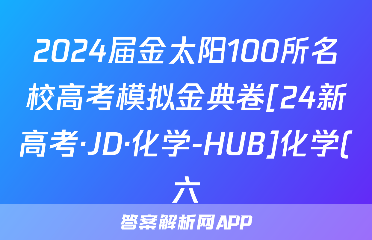 2024届金太阳100所名校高考模拟金典卷[24新高考·JD·化学-HUB]化学(六)6试题正在持续更新,目前2024届最新高考模拟示范卷答案网为大家整理了相关试题及答案,供大家查缺补漏,高效提升成绩。