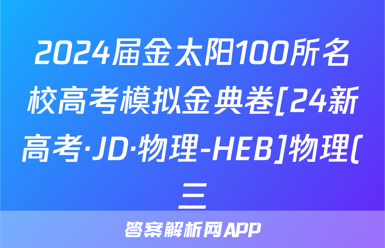 2024届金太阳100所名校高考模拟金典卷[24新高考·JD·物理-HEB]物理(三)3答案正在持续更新,目前2024届最新高考模拟示范卷答案网为大家整理了相关试题及答案,供大家查缺补漏,高效提升成绩。
