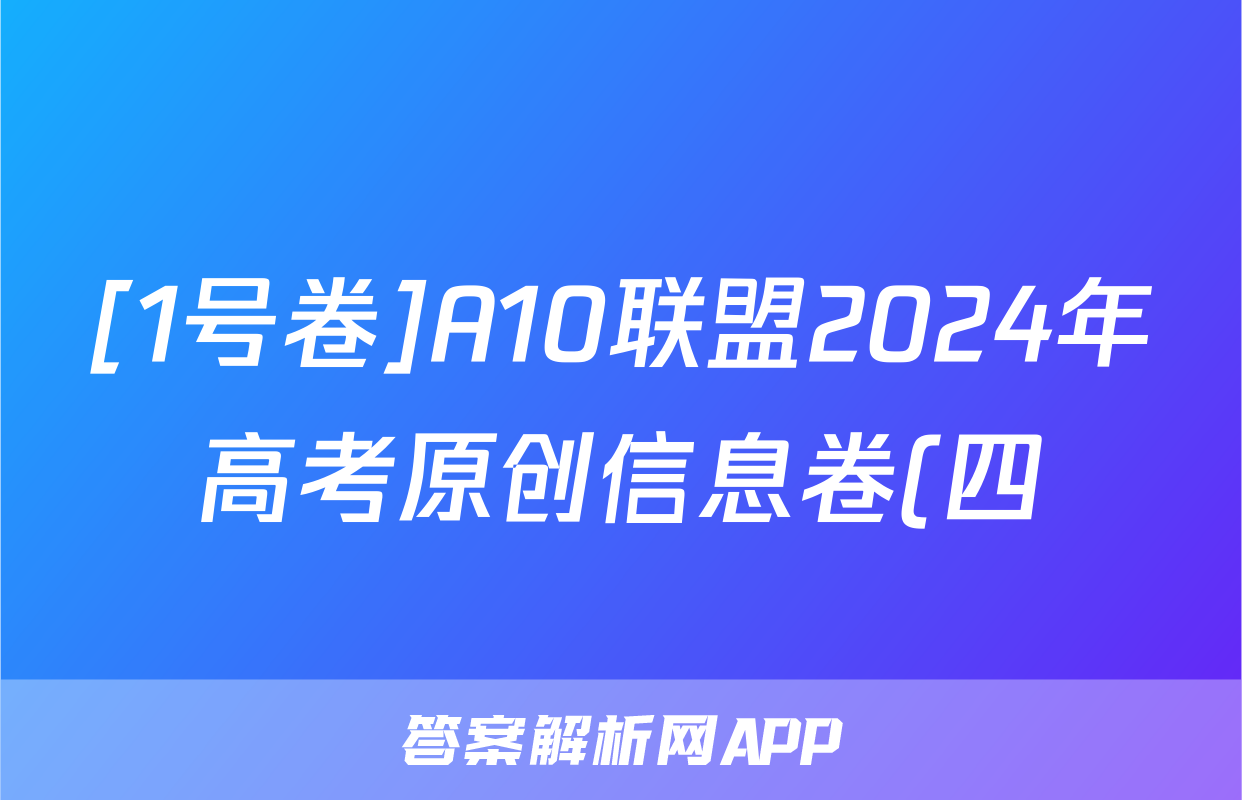 [1号卷]A10联盟2024年高考原创信息卷(四)4物理试题正在持续更新,目前2024届最新高考模拟示范卷答案网为大家整理了相关试题及答案,供大家查缺补漏,高效提升成绩。