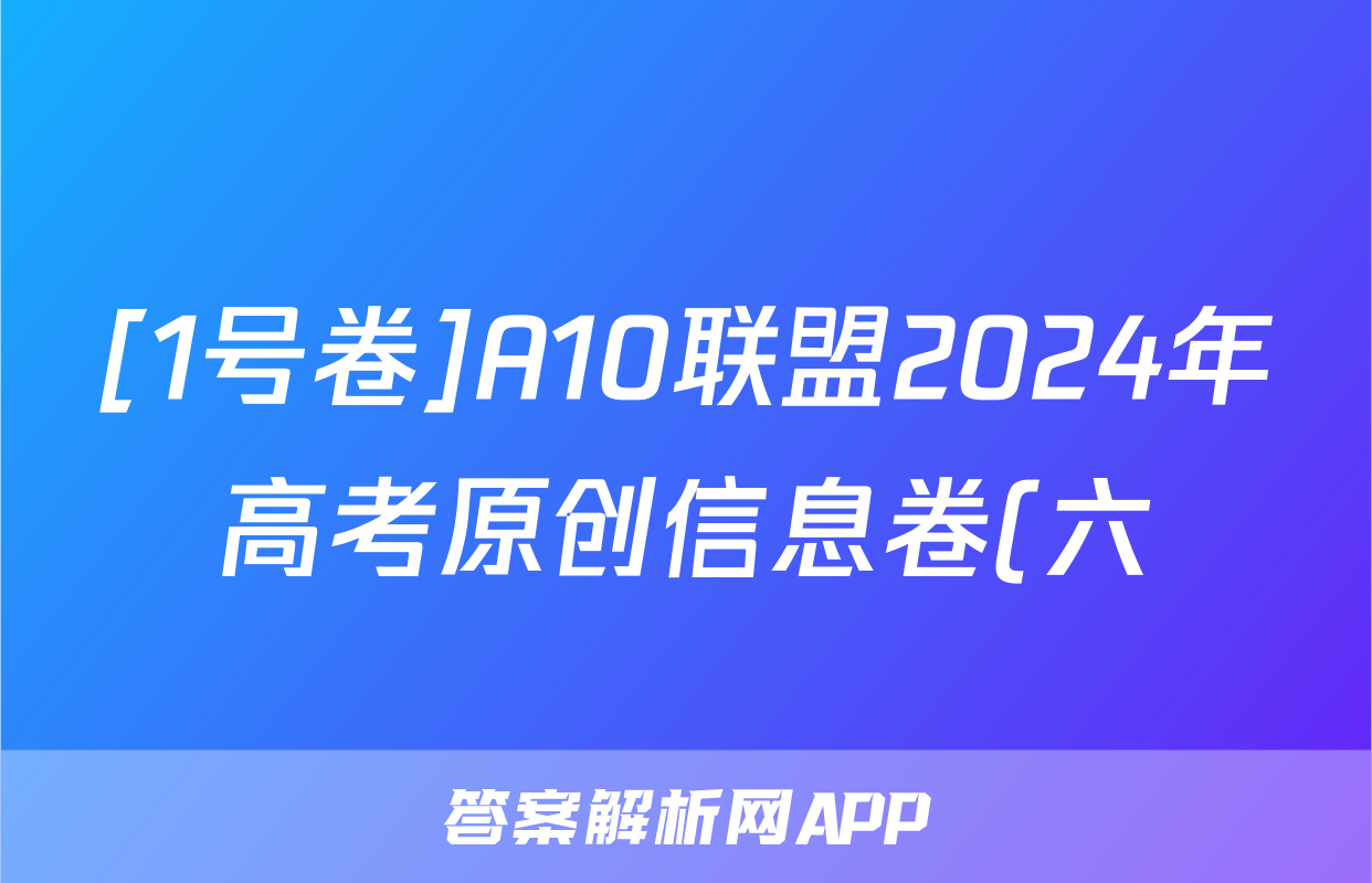 [1号卷]A10联盟2024年高考原创信息卷(六)6物理答案正在持续更新,目前2024届最新高考模拟示范卷答案网为大家整理了相关试题及答案,供大家查缺补漏,高效提升成绩。