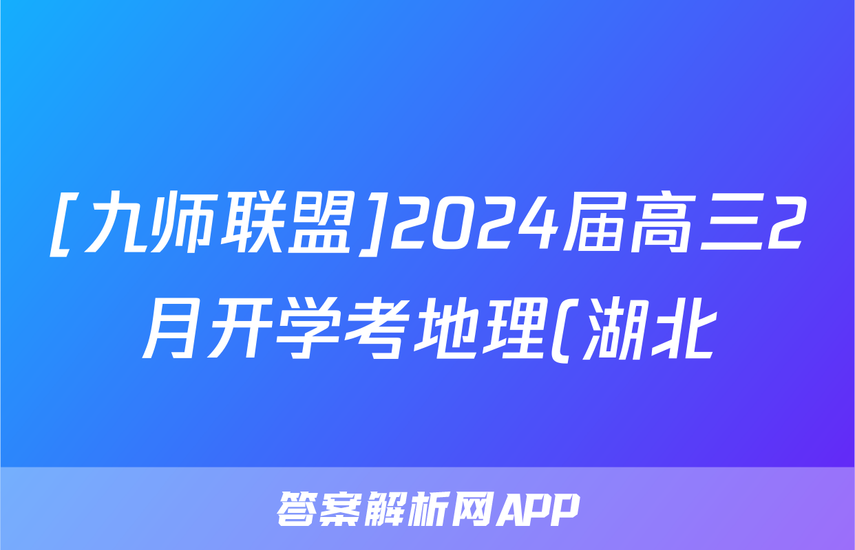 [九师联盟]2024届高三2月开学考地理(湖北)试题正在持续更新,目前2024届最新高考模拟示范卷答案网为大家整理了相关试题及答案,供大家查缺补漏,高效提升成绩。
