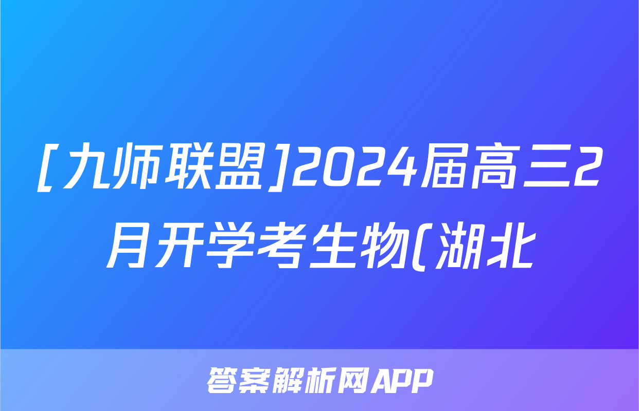 [九师联盟]2024届高三2月开学考生物(湖北)试题正在持续更新,目前2024届最新高考模拟示范卷答案网为大家整理了相关试题及答案,供大家查缺补漏,高效提升成绩。