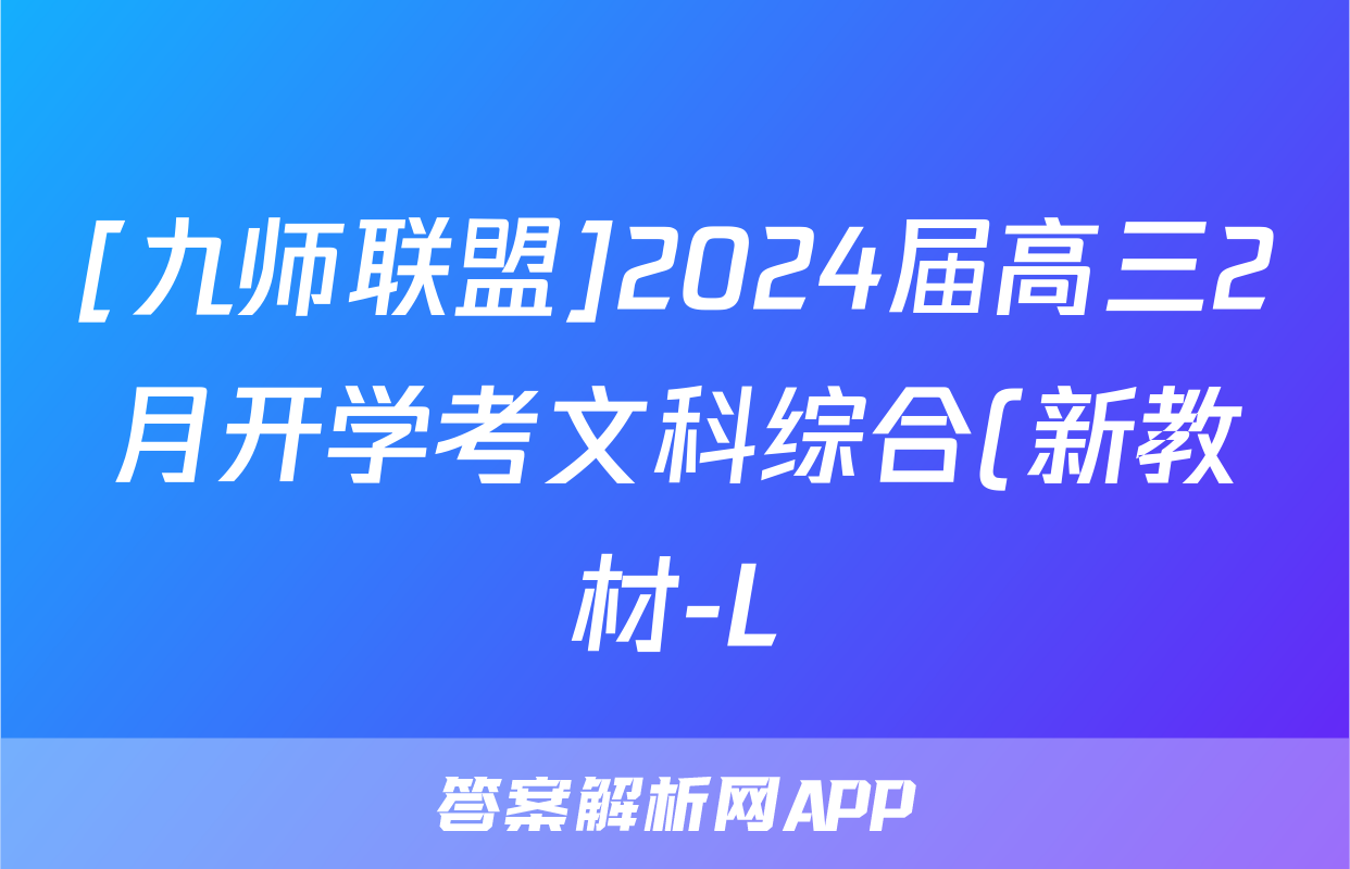 [九师联盟]2024届高三2月开学考文科综合(新教材-L)答案正在持续更新,目前2024届最新高考模拟示范卷答案网为大家整理了相关试题及答案,供大家查缺补漏,高效提升成绩。
