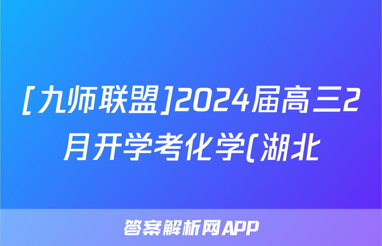 [九师联盟]2024届高三2月开学考化学(湖北)答案正在持续更新,目前2024届最新高考模拟示范卷答案网为大家整理了相关试题及答案,供大家查缺补漏,高效提升成绩。