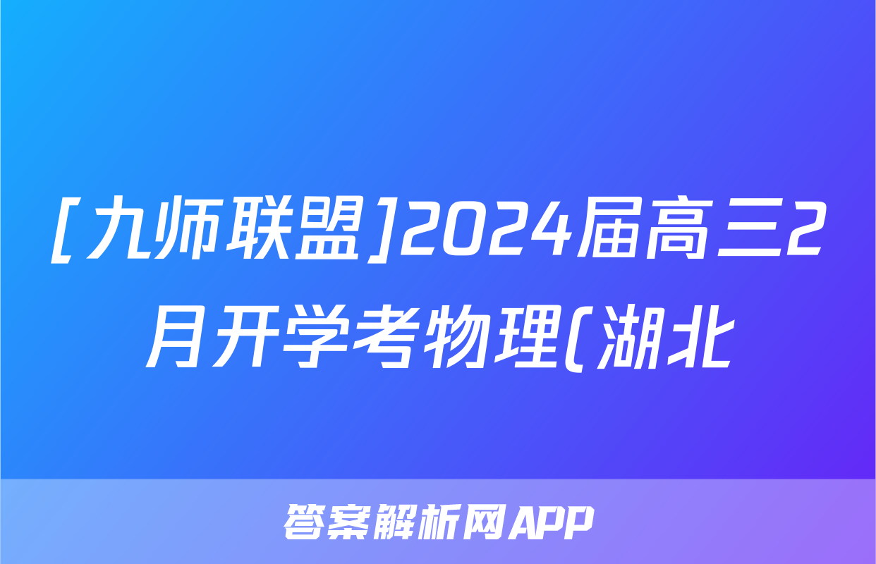 [九师联盟]2024届高三2月开学考物理(湖北)答案正在持续更新,目前2024届最新高考模拟示范卷答案网为大家整理了相关试题及答案,供大家查缺补漏,高效提升成绩。