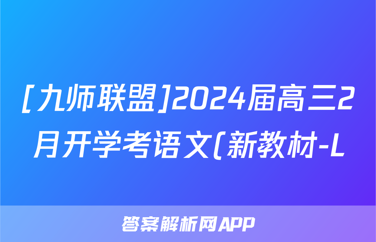[九师联盟]2024届高三2月开学考语文(新教材-L)试题正在持续更新,目前2024届最新高考模拟示范卷答案网为大家整理了相关试题及答案,供大家查缺补漏,高效提升成绩。
