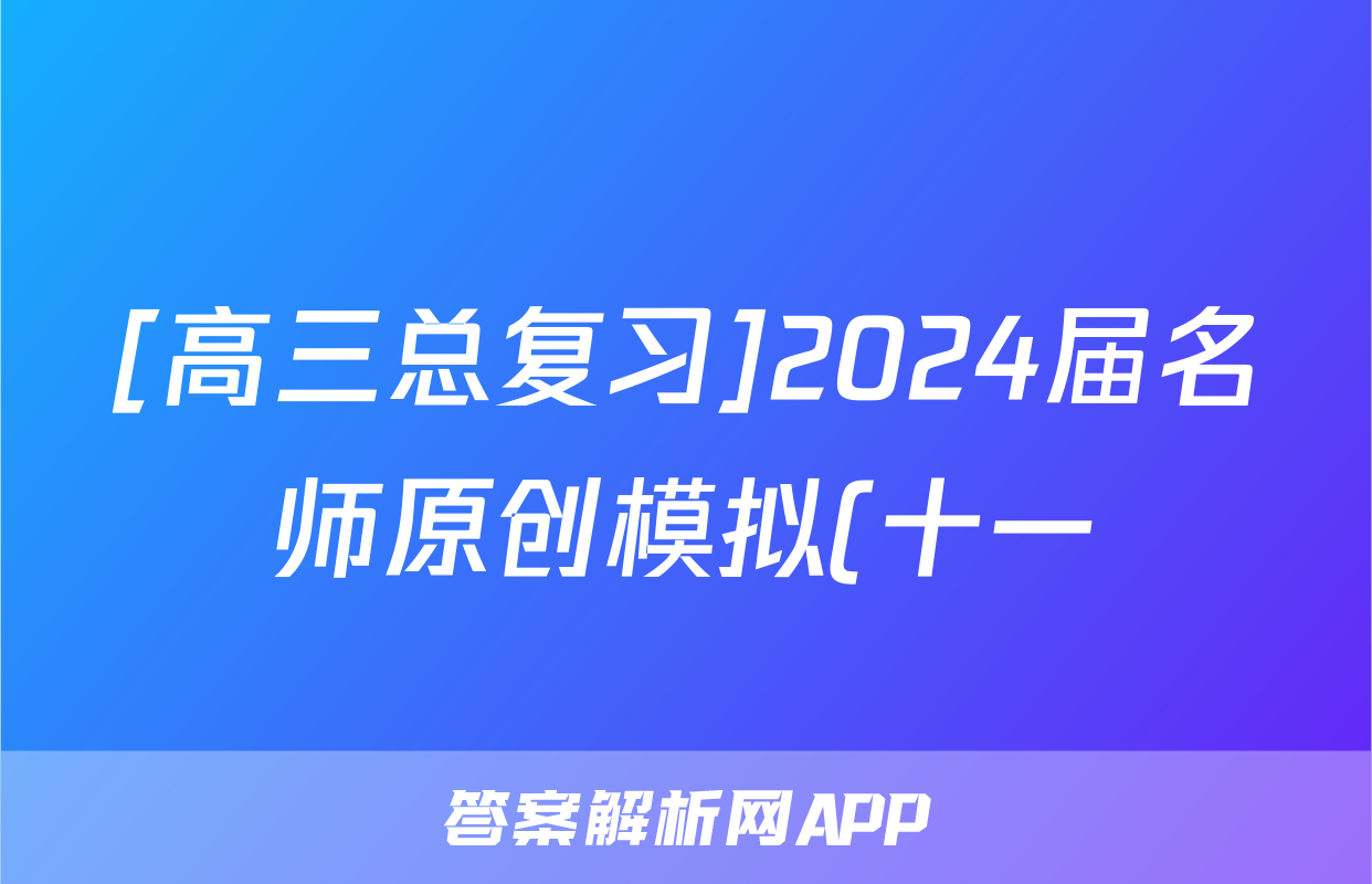 [高三总复习]2024届名师原创模拟(十一)11化学(ZS4)答案正在持续更新,目前2024届最新高考模拟示范卷答案网为大家整理了相关试题及答案,供大家查缺补漏,高效提升成绩。