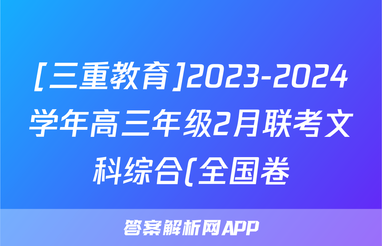 [三重教育]2023-2024学年高三年级2月联考文科综合(全国卷)试题正在持续更新,目前2024届最新高考模拟示范卷答案网为大家整理了相关试题及答案,供大家查缺补漏,高效提升成绩。