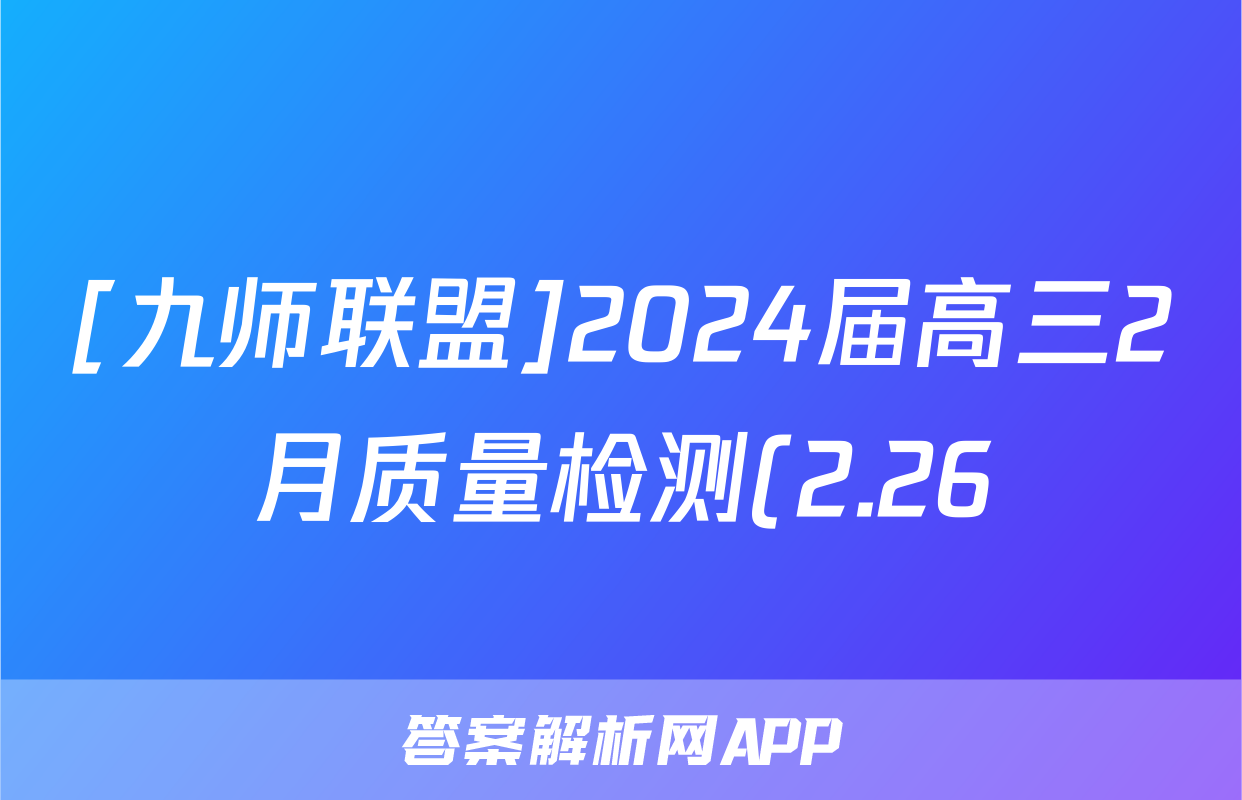 [九师联盟]2024届高三2月质量检测(2.26)文数答案正在持续更新,目前2024届最新高考模拟示范卷答案网为大家整理了相关试题及答案,供大家查缺补漏,高效提升成绩。