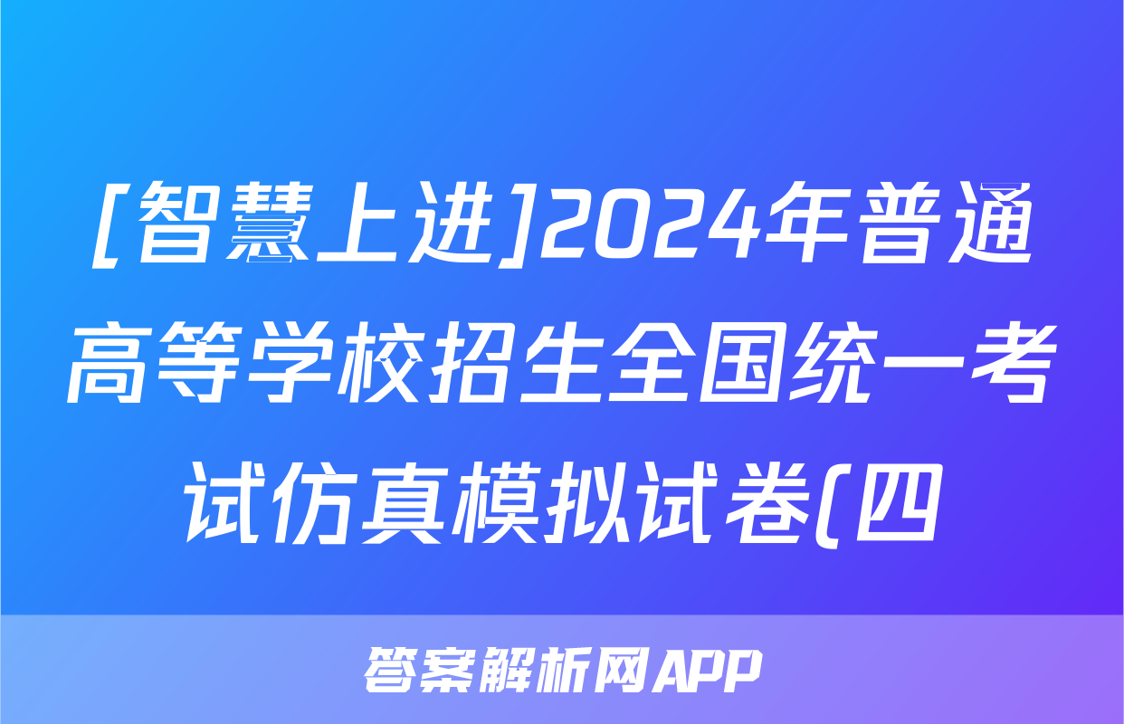 [智慧上进]2024年普通高等学校招生全国统一考试仿真模拟试卷(四)4生物·GD试题正在持续更新,目前2024届最新高考模拟示范卷答案网为大家整理了相关试题及答案,供大家查缺补漏,高效提升成绩。