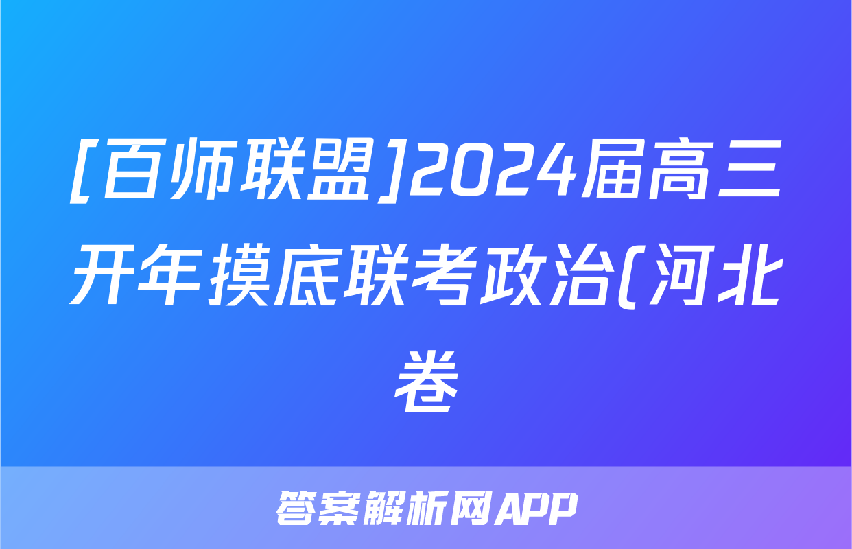 [百师联盟]2024届高三开年摸底联考政治(河北卷)答案
