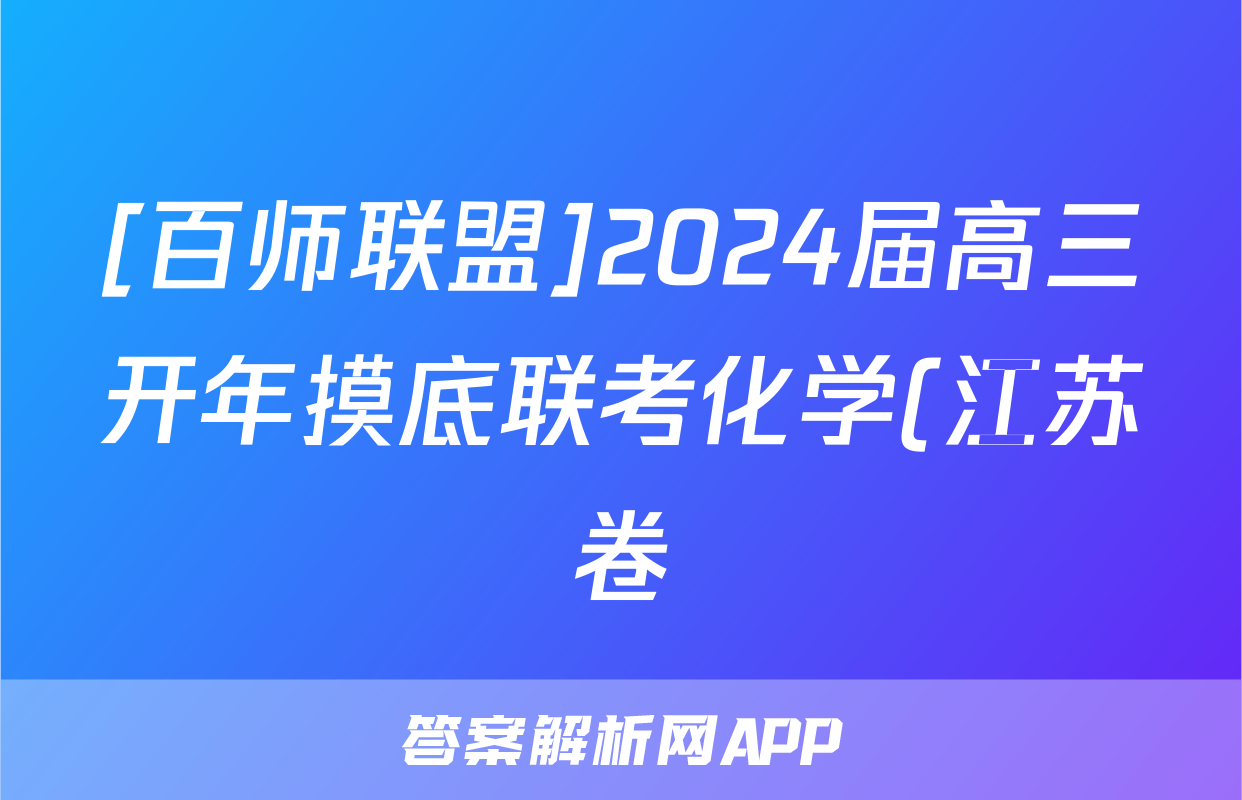 [百师联盟]2024届高三开年摸底联考化学(江苏卷)答案正在持续更新,目前2024届最新高考模拟示范卷答案网为大家整理了相关试题及答案,供大家查缺补漏,高效提升成绩。