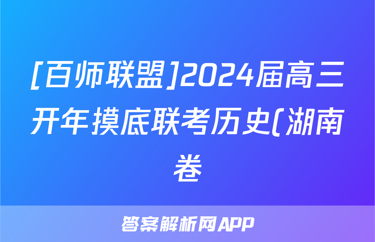 [百师联盟]2024届高三开年摸底联考历史(湖南卷)答案正在持续更新,目前2024届最新高考模拟示范卷答案网为大家整理了相关试题及答案,供大家查缺补漏,高效提升成绩。