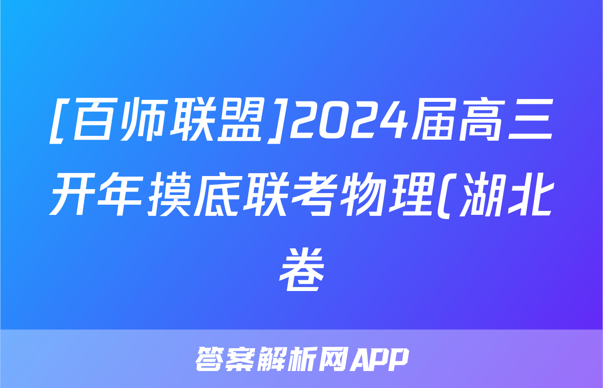 [百师联盟]2024届高三开年摸底联考物理(湖北卷)试题正在持续更新,目前2024届最新高考模拟示范卷答案网为大家整理了相关试题及答案,供大家查缺补漏,高效提升成绩。