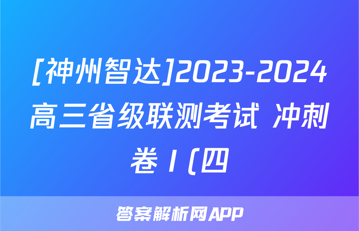 3、神州智达2024高三诊断大联考四